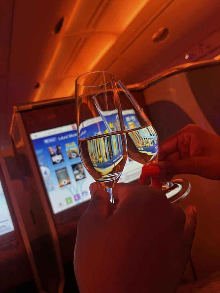 We flew with Emirates Business Class again, which I usually love for the home-to-airport chauffeur service, lounge access and overall comfort. I was excited to finally fly on the A380, especially for the iconic onboard bar. But this flight wasn’t their strongest — the champagne ran out early, and the main meal wasn’t memorable. I spent most of the flight at the bar instead, where the snacks were surprisingly better. It wasn’t quite the business-class experience I’ve come to know, but thankfully, Dubai itself more than made up for it.