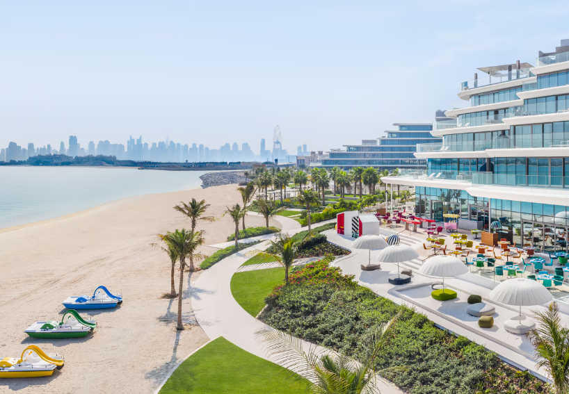 Our base for the trip was W Dubai – The Palm, a five-star playground on the iconic Palm Jumeirah. Bold, modern and full of personality, the hotel captures the signature W brand energy. Our room was spacious with stunning views, but the pool area stole the show: DJs on rotation, a jacuzzi, huge pools and private beach access.